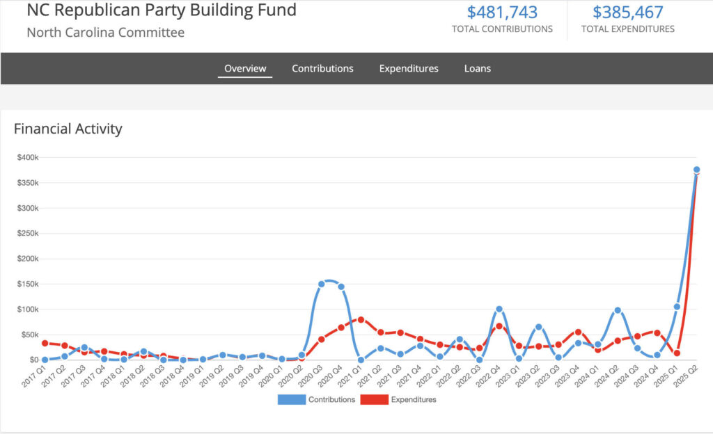 This year Duke Energy found a new way to boost the state GOP. The company’s latest corporate political expenditure report, covering the first half of this year, shows a first-time donation of $100,000 to the “North Carolina Republican Party,” but state law bars corporations from donating directly to political parties. In fact, Duke’s money went to the North Carolina Republican Party Building Fund, to which the company is the single biggest corporate donor.
