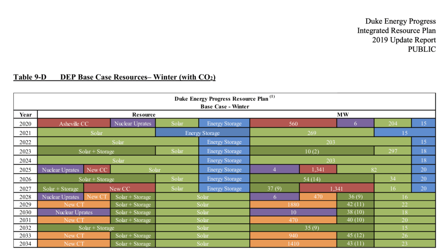 In a similar long-term planning document that Duke submitted to Indiana regulators in July, the utility proposed building a 1,240 MW natural gas combined cycle unit in 2028 and an additional 1,240 MW unit in 2034, with a far smaller increase in renewable energy during the same time period.